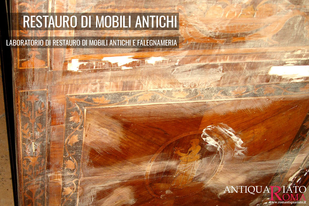 Il restauro ebanistico riguarda poi la ripresa di piccole parti mancanti o distaccate ed il rifacimento o riposizionamento degli eventuali elementi sculturei.