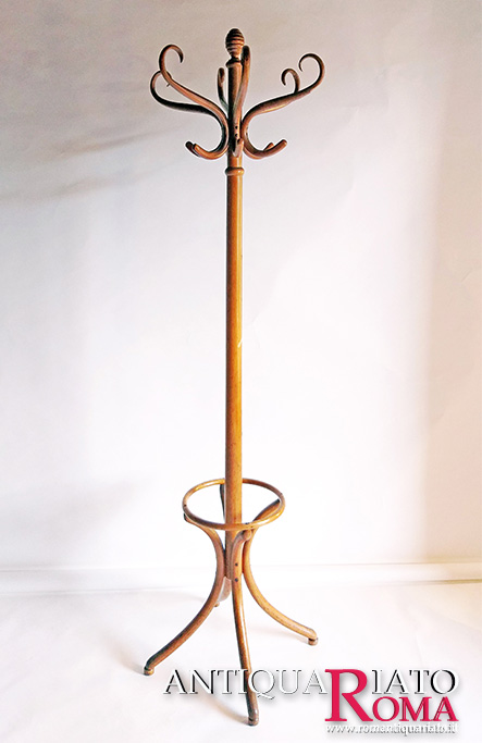 Appendiabiti Thonet in faggio ricurvo dotato di portaombrelli di origine tedesca.