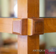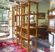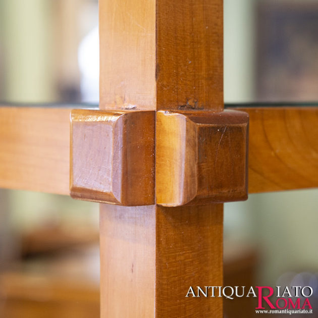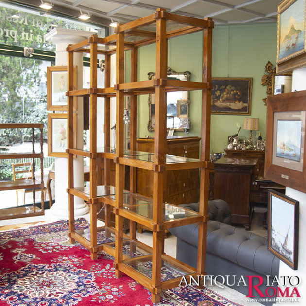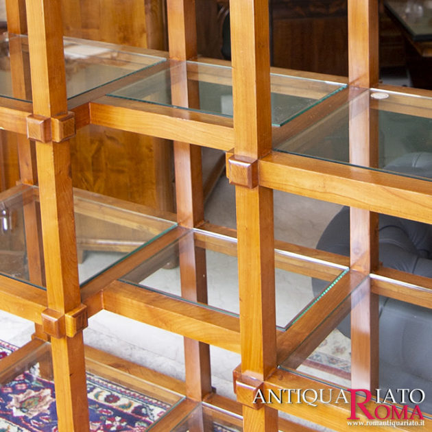 completamente a giorno.Libreria a giorno in ciliegio massello e ripiani in cristallo realizzabile artigianalmente dal nostro laboratorio di falegnameria.