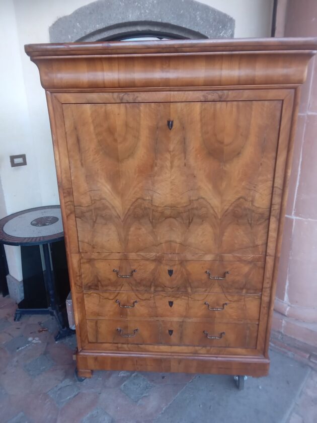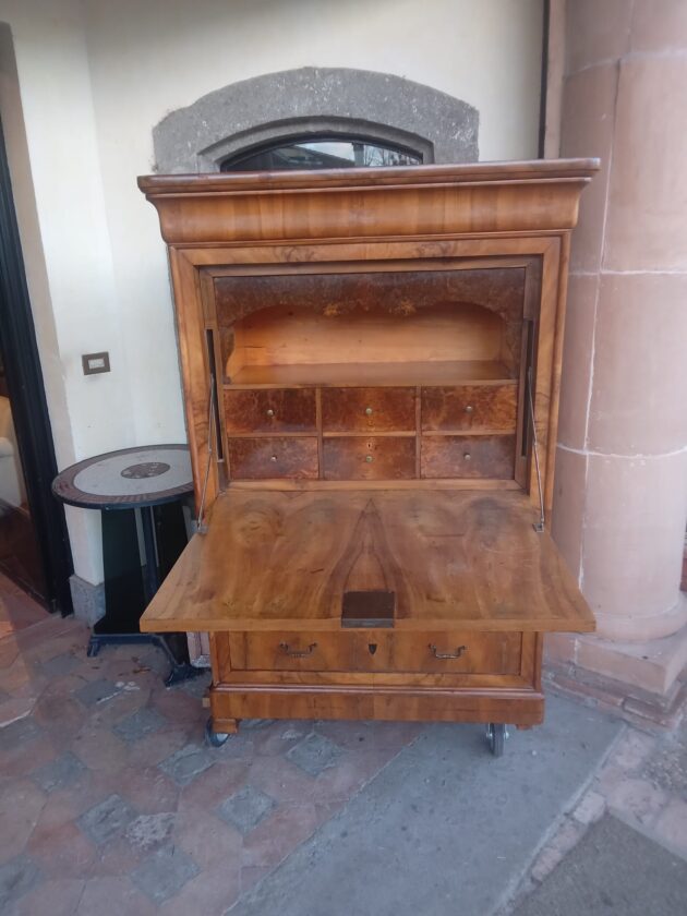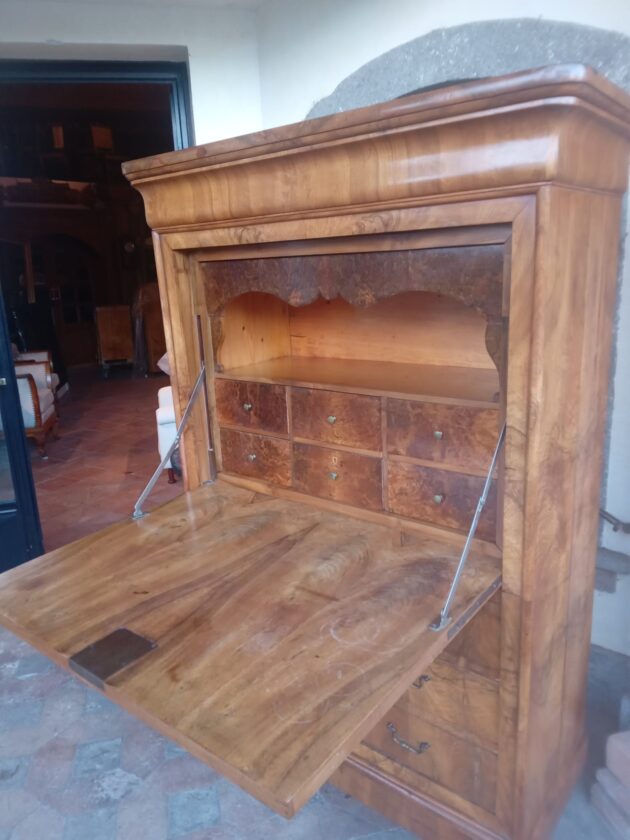 Splendido secretaire in noce fiammata | Antiquariato a Roma