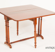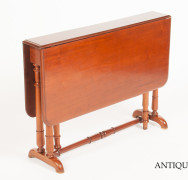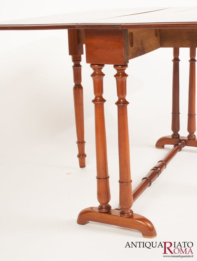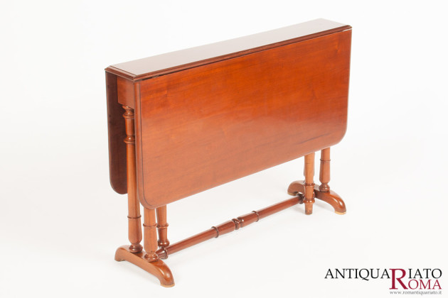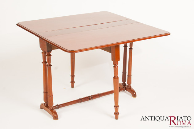 Piccolo tavolo da tè a bandelle in mogano della seconda metà dell’800 di misure estremamente ridotte quando chiuso.